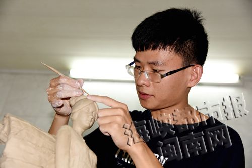 高中读理科的黄伟硼说,选择泉州工艺美术职业学校,就是想读雕塑专业,但因没有美术功底,刚开始学校不同意他跨系转专业。后来了解到黄伟硼出自佛雕世家,有一定的实践功底,才让他破了例。