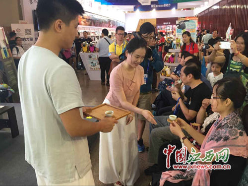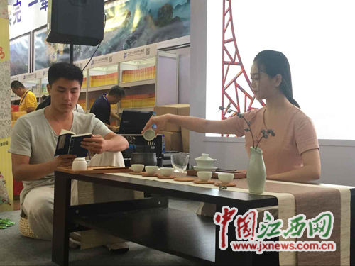 此次江西馆表演的《书苑茗香》由国家中级茶艺师专门为此次书展创编,将书与茶融合在一起,表演过程中,茶艺师将润器、投茶、冲泡等过程一气呵成,如行云流水,美不胜收。