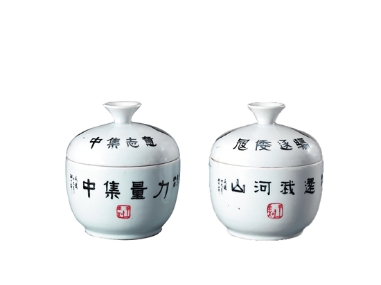 此次还有别出心裁的瓷器上印制着“意志集中、力量集中、节约救国、一心一意 共赴国难”等口号,据介绍这一部分有来自学校的教育创意,如一个花瓶上就书铭有大字醒目的“为国干城”以及“永春县私立中小学第二届运动会男子个人优胜奖品”等字样,将这含义深刻的花瓶作为学生体育竞赛的奖品,教育鞭策学生奋发图强、为国效力,做国家的捍卫者,饱含着浓浓的保家卫国、抗战到底的民族情怀。