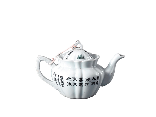 据了解,在抗战时期瓷器的生产量较大,主要以日用的茶壶、茶杯等为主,因此,德化当时的许多陶瓷厂家将“抗战必胜”、“抗战到底”、“誓雪国耻”、“勿用日货”、“勿忘国耻”、“驱逐倭寇 还我河山”、“抗战建国”、“铁血救国”等誓言口号铭刻于生活常见的日用瓷器上,时刻唤醒民众团结抗日,而这些瓷器不仅适用于当时的百姓,也可以提供给前线,起到宣传鼓舞的作用。