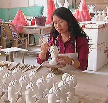 【同期声 工艺美术师 曾素妹 :泥塑跟这些青运会里面的运动的艺术能结合起来,我就是说想把我们德化陶瓷介入青运会的平台,把它推广出去。】