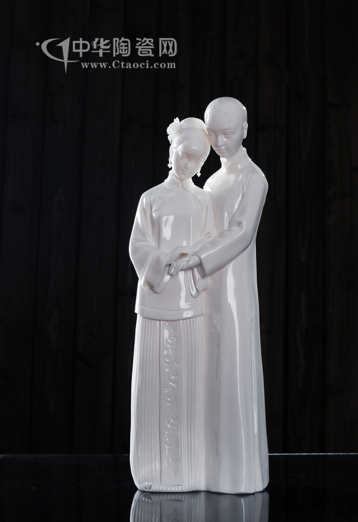 简介:百年陶瓷世家,陈丽玲代表作品。长相忆兮常相守,女子轻轻地倚着心爱的男子,佳偶天成。作品采用德化优质瓷土,精工细刻,历经1300度高温烧制,瓷质洁白细腻,作品手刻签名。