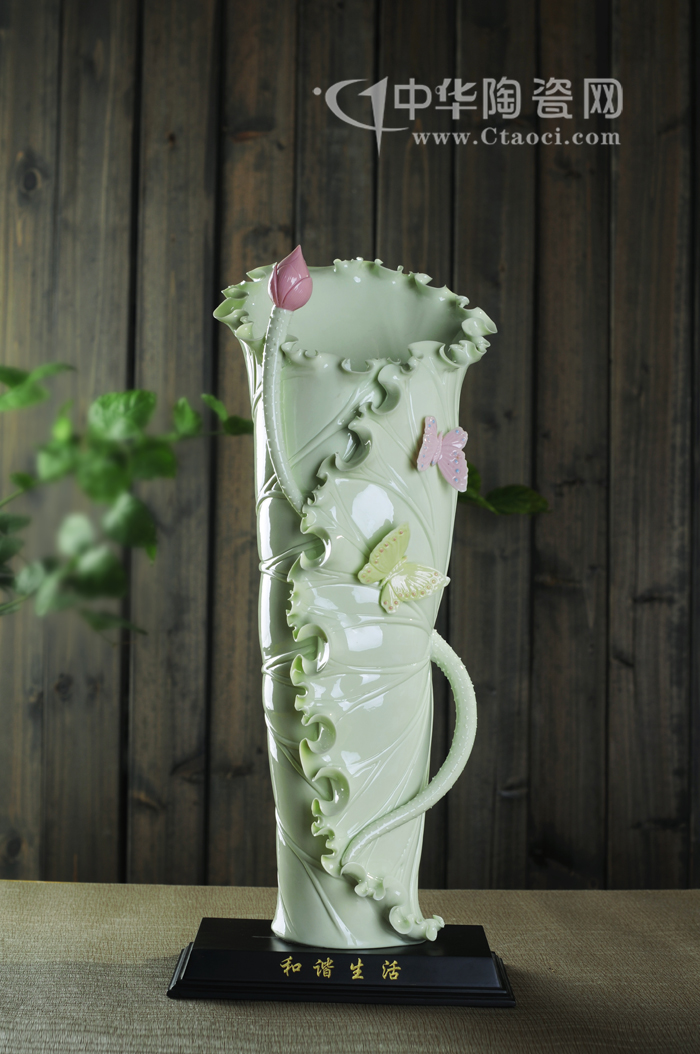 简介:蝶舞清瓶是陈丽玲《“和谐”系列》作品,获“海丝杯”美术陶瓷作品展评金奖,巧妙运用“荷”“和”谐音,刻画的荷叶脉络清晰逼真,叶柄倒刺密生,荷花含苞待放,吸引了蝴蝶翩翩起舞,与其说这是花瓶,不如说它是工艺品。