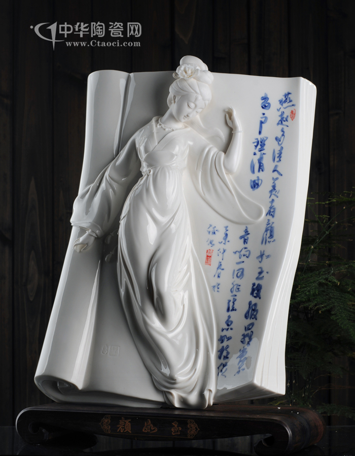 简介:第四届福建省陶瓷艺术设计创新评比银奖,入围首届南通国际当代工艺美术双年展,获第十届全国陶瓷艺术创新铜奖。打开的书籍中翩然一仙子。书的方形线条与人物的迷人曲线对比,形成动静张力的视觉冲击;人物的神情、动态、衣裙传达出东方女子的温柔闲雅、清淡秀媚、如诗如画。