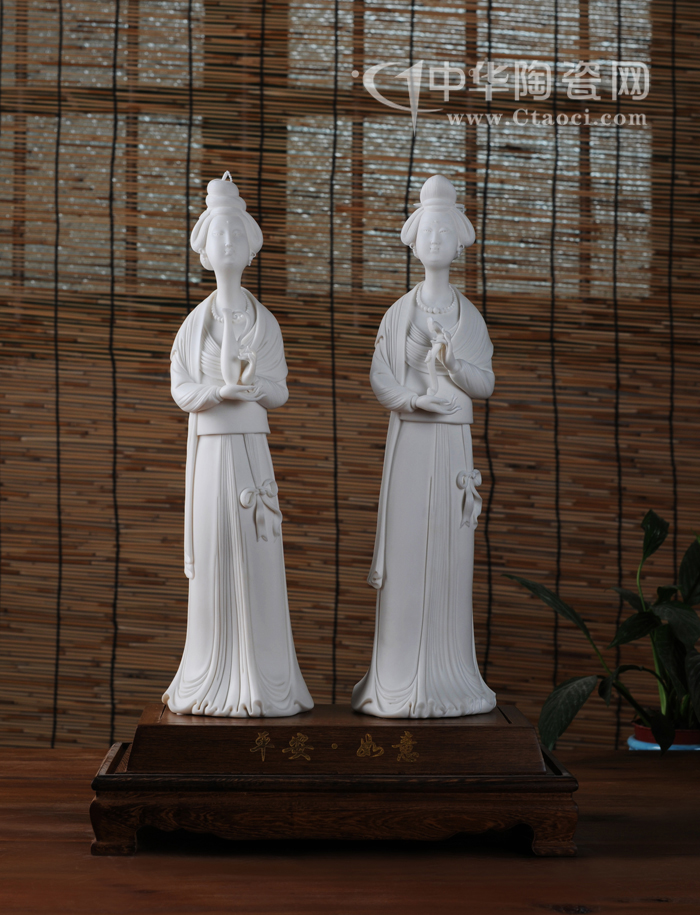 简介:第四届福建省陶瓷艺术设计创新评比金奖,两仕女一个手持如意,一个手持玉瓶,巧妙运用谐音,寓意平安如意。作品刻画细致,对五官、衣物的细节把握得恰到好处。
