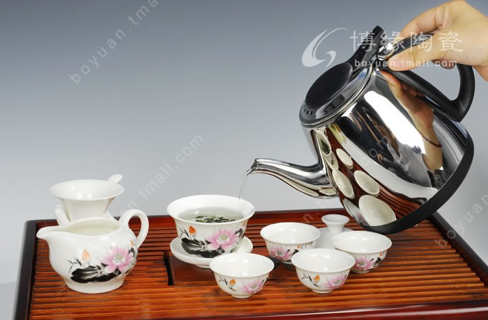经过“一看二听三摸”之后,基本上可以断定瓷质茶具的优劣。除此之外,还可以根据个人的喜好来选择不同器形和纹饰的茶具。