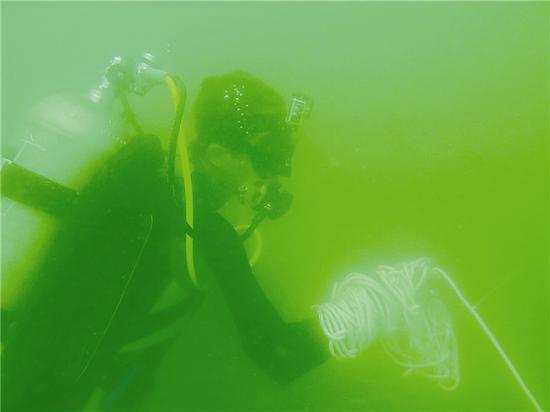 考古队员在水下进行调查
