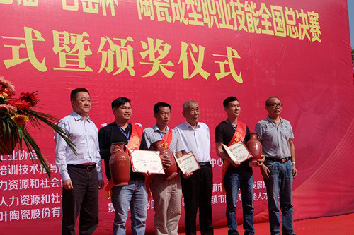 陶瓷成型职业技能全国总决赛各工种第一名颁奖合影(李锦峰,右二)