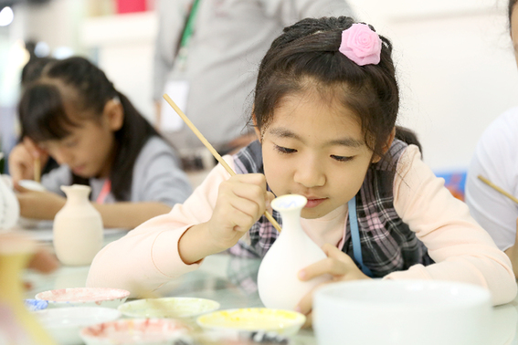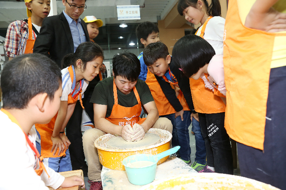 参观瓷器展品后,小朋友们开心地进入互动环节。“唐三彩主要是指哪三彩?”,“我国历史上出现最早的瓷器是哪一种?”科普问答中,小朋友们纷纷举手抢答。随后小朋友们更是亲自玩起了泥巴,尽情享受制陶的乐趣。拉坯成型,施釉彩绘,小小陶艺师们发挥想象力,专心致志地做着自己的作品,并从瓷泥的芬芳和彩绘的艳丽中,领略陶瓷艺术文化的魅力。