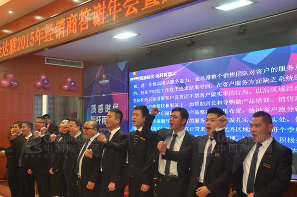 (记者/谭广坪) “质感时代,标杆再定义”,金达雅陶瓷2015年经销商答谢年会暨原创新品发布会,于2015年12月11日,在湖南天欣集团总部隆重举行。此次盛会除了作为金达雅的答谢年会,亦是中西部陶瓷产区研讨会,汇聚了省市领导、全国各地的陶瓷科研机构专家学者、企业代表、金达雅品牌经销商以及媒体近300人,共襄盛典。金达雅陶瓷作为“中国仿古砖十大品牌”,更是天欣科技旗下的耀眼名牌,披戴十六载荣光,在盛大的经销商答谢年会及原创新品发布会典礼现场,砥砺前行,向更为壮阔丰盛的未来进发。