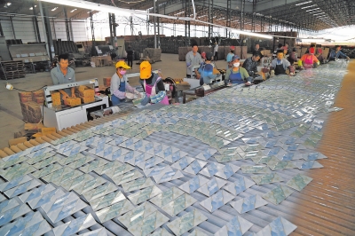 桂平市新金盛陶瓷有限公司二期技改项目2条外墙砖生产线于今年11月顺利投产。该项目投资1.5亿元,日产外墙砖3万平方米,预计年产值达2亿元。(记者张智荣摄)