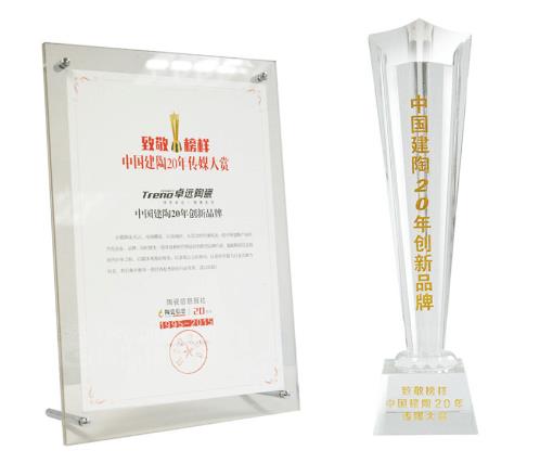 会议上,卓远陶瓷作为建陶行业企业的优秀代表,经过激烈竞争与角逐,顺利揽获“中国建陶20年创新品牌”殊荣,再次成为陶业关注的焦点。