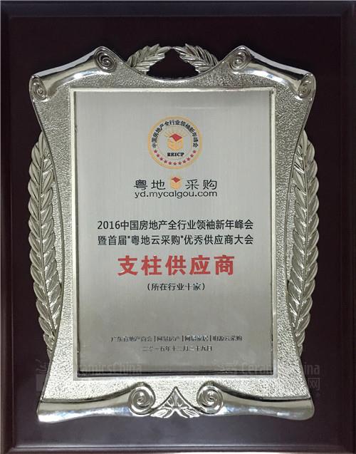 2015年12月29日,由网易房产主办的“互联网·家·新风口——2016中国房地产全行业领袖新年峰会暨中国地产家居冠军榜及粤地标杆支柱供应商大会”在琶洲香格里拉酒店珠江宴会厅盛大举行。金牌亚洲陶瓷作为喷墨瓷砖领导者品牌出席本次盛会,与地产全行业优秀企业共话发展,共襄盛事。金牌亚洲陶瓷被评为“2016首批粤地云采购优秀供应商”。