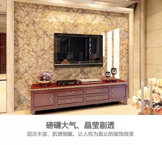 5、精雕细琢,更透亮。裂变反应充分,半透明、凝脂状玉石质感纹理自然生成,晶莹通透、层次感丰富、立体感更强,镜面光泽度高达100—120度,比天然石材更为晶莹柔润,空间更加流光溢彩。