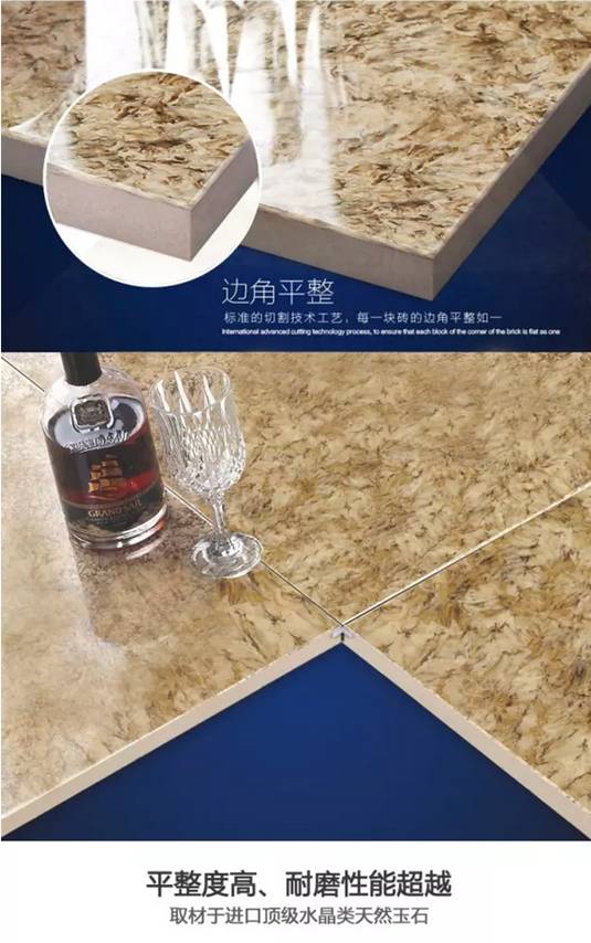 1、大坯底,更精致。采用845x845mm超大砖坯,有效抑制微晶玻璃熔块在熔化过程中析出的结晶,完美细节成就品质典范。