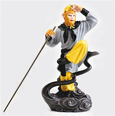 其三,孙悟空。孙悟空象征着勇敢进取以及反抗精神。这件彩陶孙悟空倒流香炉,为德化雕刻师创作,此作采用写实的手法,将孙悟空的外观特点表现得细腻而逼真。整个香炉简洁大气,孙悟空头戴金冠,身披战袍,手持金箍棒,威风凛凛。一对火眼金睛炯炯有神,透露出铲除一切妖魔的决心。底部配以流云烟的效果,说明“美猴王”孙悟空是踏云而来,这不由让人想起毛泽东“金猴奋起千钧棒,玉宇澄清万里埃”的壮美诗句。