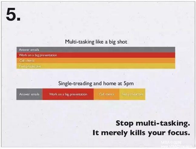 不要多任务,这只会消耗注意力;保持专注,一心一用。