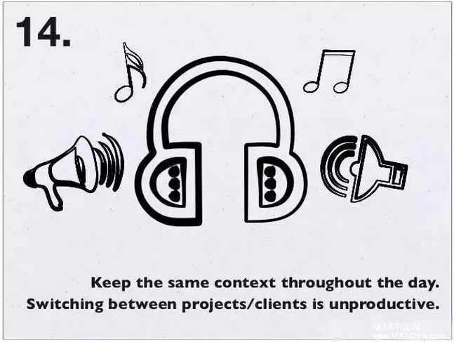 一整天保持相同的工作环境。在项目或客户间切换,效率会低。