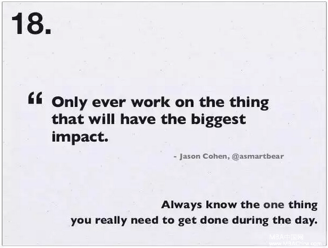 必须清楚白天必须完成的事是什么。只去做那件有最大影响的事。