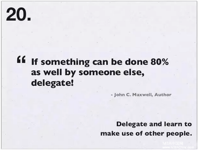 授权并擅用他人的力量:君子善假于物(人),如果某件事其他人也可做到八成,那就给他做!