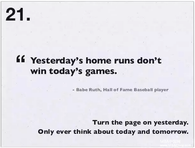 把昨天翻过去,只考虑今天和明天:好汉不提当年勇。