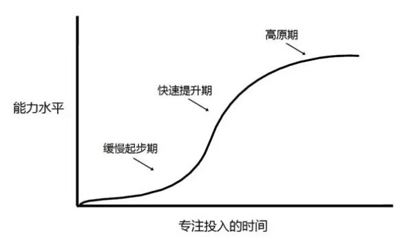 很多人曾写信告诉笔者,他们有很多爱好,什么都会尝试一下,但都不精通,到了最后不知道选择哪个作为他们的职业道路,甚至最后找工作也成了麻烦。其实道理很简单,每个人的精力是有限的,如果你不专注,就很可能永远在「缓慢起步期」徘徊,从 A 领域的缓慢起步期跳到 B 领域的缓慢起步期,再到 C、D……但就是到不了快速提升期,更到不了高原期。