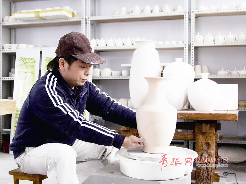 上釉。青岛日报/青报网记者胡相洋摄