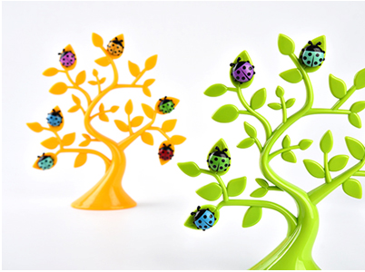 日丽工艺礼品厂带来造型清新靓丽的幸运树,其上栖息着零星小巧可爱的七彩瓢虫,七星瓢虫是有磁性的,不仅能挂在树上成为照片或者留言贴的守护神,也可以贴在冰箱上当美美的装饰品。带来温情,也增添一份生活品质!