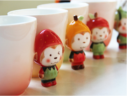 凡家陶瓷,以朴实的生活追求,生动有趣的卡通形象与不拘一格的泥塑相结合,给人带来一种的优雅不羁的独特感受。水果猴宝杯系列,卡通新型设计动物陶瓷杯, 全新喷彩手绘技术,软化妹纸心的萌萌模样,不仅仅是个杯子,舒适好拿的握柄,可爱动物造型给你的闲暇时光配上好心情。