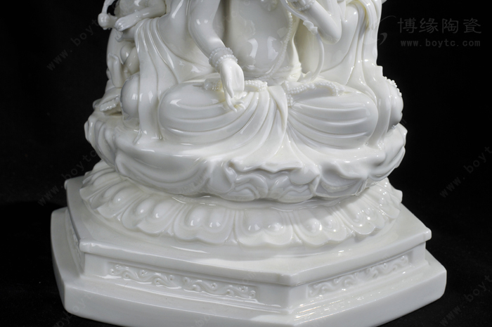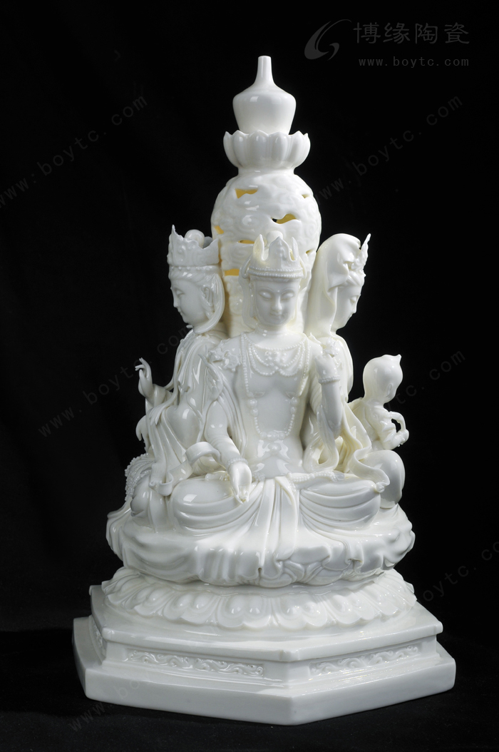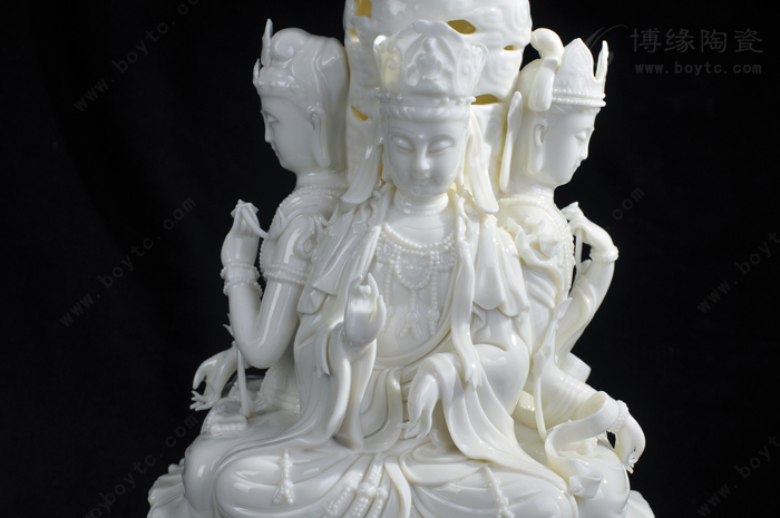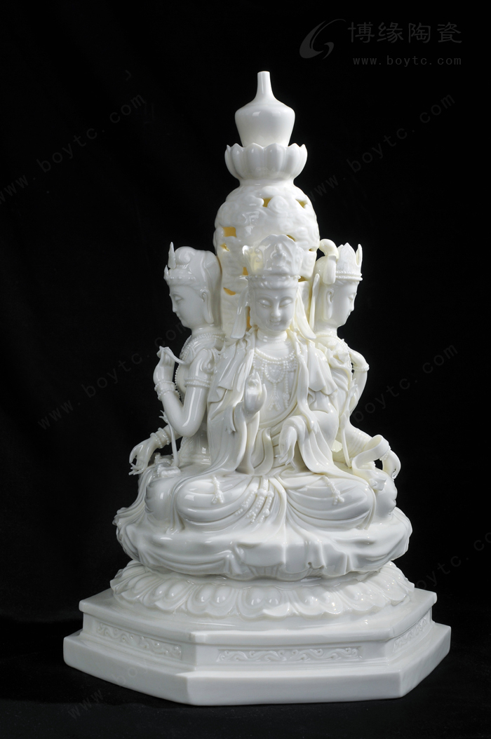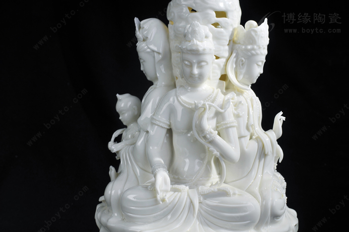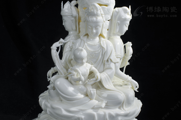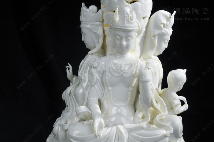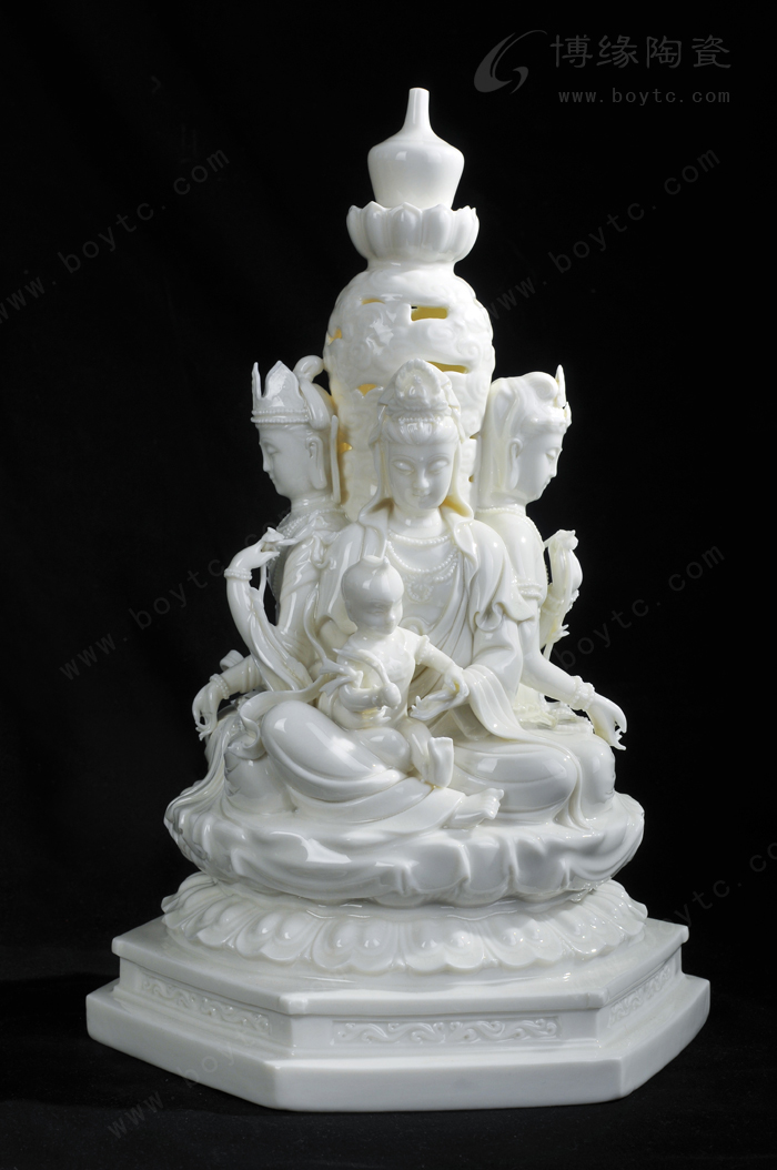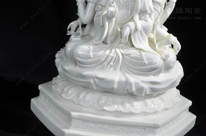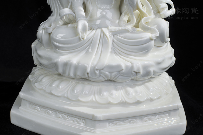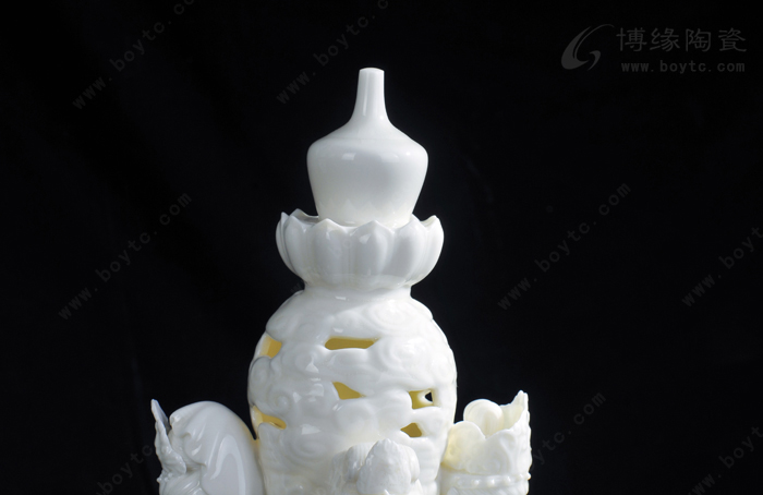 例二:“玉白釉瓷”:以前“德化白”、“中国白”完全靠瓷土好发色,最近新研发的“玉白釉”的发明,改变了长期以来中国白的传统概念,以创新方式来表达一样中国白,和传统的“中国白”相比,用“玉白釉”就可以不用很好的瓷土也能表达的非常温润如玉、釉色肥厚、耐与琢磨的感觉,有着典型的“猪油白“、“建白”、“象牙白”特征,跟高端的“中国白”很好的瓷土相比,不仅节省了很多成本,也创造了一种新的陶瓷艺术美。