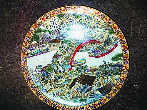 “梨花风起正清明,游子寻春半出城。日暮笙歌收拾去,万株杨柳属流莺。”这是南宋诗人吴惟信的《苏堤清明即事》,宋朝的繁华从中可窥一斑。当然,宋朝的民俗风还要看北宋画师张择端的《清明上河图》。图4是一只清代乾隆年间的珐琅彩盘,直径35.1厘米,图案便是“清明上河”之再现。只见红绿鲜明,房屋错落有致,人物并行不悖,清晰可见,真是美轮美奂。左上角有“清明上河图,大宋宫廷画家、翰林大学士张择端”,底部有“大清乾隆年制”的字样。