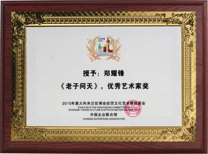 由中国国际商会投融资服务委员会,中国民族贸易促进会,华夏文化传媒集团联合主办,意大利米兰世博交流中心,米兰世博会中国企业馆支持的2015年意大利米兰世博会经贸文化艺术展颁奖典礼于2015年12月8日上午在全国政协礼堂金色大厅隆重举行,原全国政协副主席李蒙、中国人民解放军原副总参谋长张黎上将及米兰世博会经贸文化组委会有关领导出席会议并发表讲话,来自世界各地的政要,商贾,艺术家,等数百人出席了此次颁奖盛会。