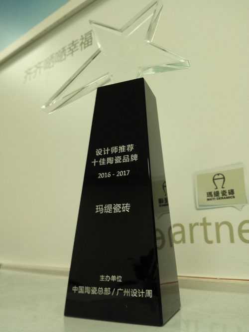 经激烈角逐,玛缇瓷砖在五位大咖导师及100位设计师的挑剔眼光下表现不俗,从产品设计灵感、技术创新以及空间展示运用三大部分及实物综合评比之后,一致认为玛缇瓷砖荣获“设计师推荐十佳陶瓷品牌”实至名归。据悉,此次获奖是玛缇自揽获“瓷砖十大品牌”和“大理石瓷砖十大品牌”荣誉之后再次问鼎业内大奖。