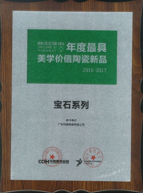 值得一提的是,玛缇在荣获“设计师推荐十佳陶瓷品牌”荣誉称号的同时,其年度新款单品大理石·宝石系列产品获得“年度最具美学价值陶瓷新品”。
