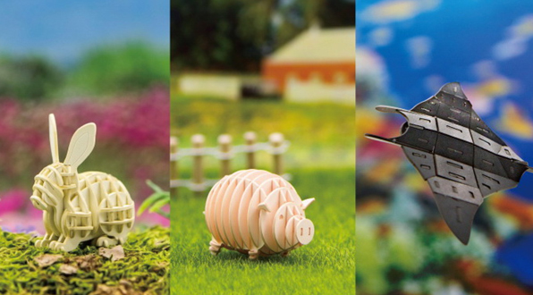 绿团创意则以研发3D智力玩具为核心。孩子们通过拼叠分割好的纸片和木片,完全不借助工具,让一个立体的动物或建筑物栩栩如生的出现,这不仅锻炼了孩子的脑力和动手能力,也让家庭亲子活动变得更有成就感。