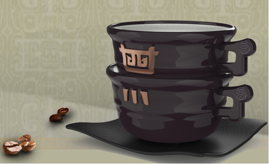 据悉,成都礼物参赛作品既有实物类也有设计类,尤其是鼓励个人设计师和院校学生参与创作,只需提交设计效果图即可参与评奖。西华大学王帅玉提交的“竹结咖啡对杯”,杯身设计有四川博物院logo、杯把手融入太阳神鸟标志元素,突出了成都的文化特色,咖啡杯本身又是大家喜闻乐见的产品,具备市场推广性。