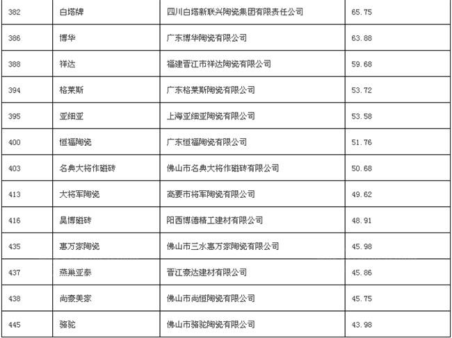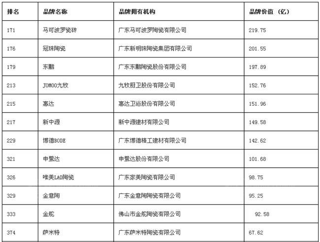 刚刚出炉的2016年(第十三届)“中国500最具价值品牌”排行榜,共有来自食品饮料、纺织服装、文化传媒、信息技术、家用电器等在内的23个相关行业的品牌入选。其中建材行业42个品牌上榜,含22个陶瓷品牌和3个卫浴品牌,且大多数已不是第一次上榜。