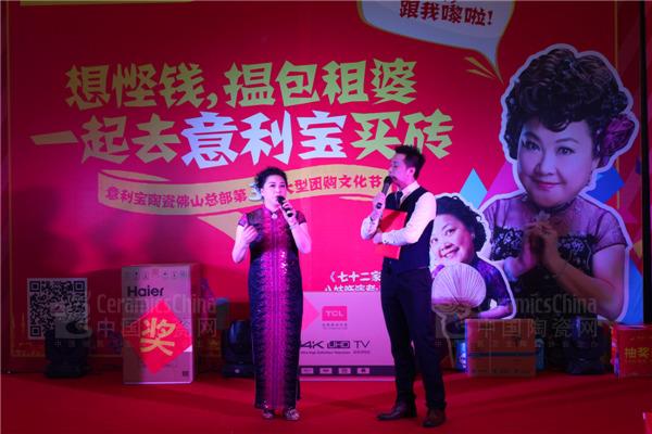 自今年欧雅陶瓷企业开启“品牌星形象·星战略”的营销模式以来,已经签约温碧霞等一众知名巨星助力品牌终端活动推广。本届意利宝团购活动更是盛情邀约广东大型粤语情景喜剧《七十二家房客》包租婆八姑的扮演者知名影视巨星黄伟香女士倾力助阵活动火爆开展。下午4点整,一身粉红亮珠旗袍装束的八姑甫一出场亮相,用着那幽默而熟悉的语气跟现场所有人打招呼时,现场立刻响起一声声热情的欢呼声,一片片雷鸣般的掌声,一阵阵相机的咔嚓声,声声入耳,无一不显示着在场业主们难以掩盖的喜悦之情。