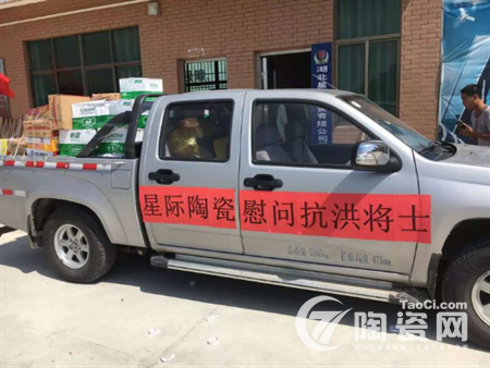 星际陶瓷车辆载着满满的慰问物资向抗洪一线出发。