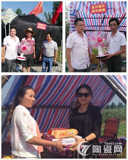 星际陶瓷为抗洪将士送去矿泉水、方便面、饼干、面包等慰问品,董事长夫人何艳娟女士带着星际陶瓷的伙伴们亲身走到各处向现场38条村、一个社区和指挥中心送上慰问品,另外更准备了40台风扇,让各位防洪一线战士在炎炎夏日中感受到星际陶瓷为他们带来的徐徐清风与关怀爱心。