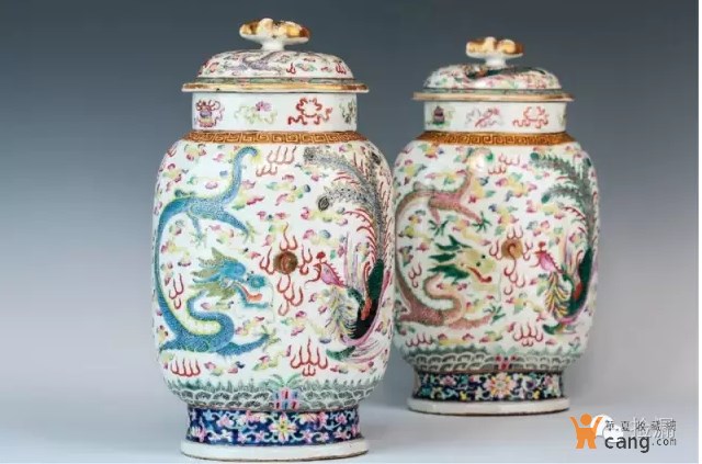 拍品编号:6047,清光绪 粉彩龙凤八宝纹粉彩壮罐(对)
