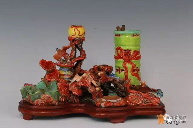 拍品编号:6217,清乾隆 粉彩镂空灵芝蝙蝠纹文房摆件