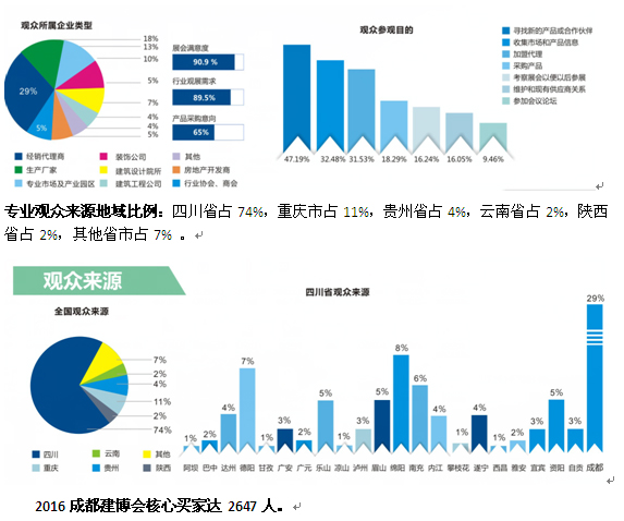 观众来源行业分类:建筑工程公司3705人、装饰公司/设计师4520人、房地产开发商3678人、设计院/所2410人、材料生产厂家/总代理/经销商45816人。