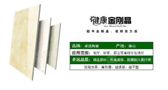 作为陶业科技创新领跑者,卓远陶瓷健康金刚晶的创新升级,无疑是对传统抛光砖、抛釉砖以及微晶石三大品类的互补,它综合了大理石的精细纹理、微晶石的通透质感、抛光砖的超强硬度等多种优点,完美规避了三者的先天缺陷,起到了良好的石材装饰效果,是真正意义上的“金刚晶”,堪称“瓷砖界的强劲实力派”!未来,卓远陶瓷将继续高举创新大旗,以更好作品、更大成绩,为陶业带来更多期待!