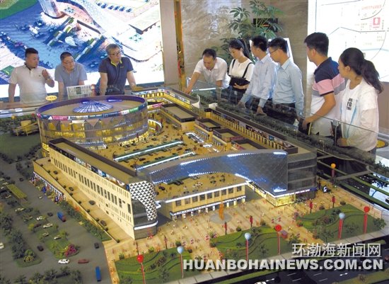 图为客商在唐山中国陶瓷博览中心沙盘区参观。