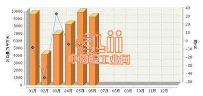 图1 2016年1~6月我国陶瓷瓷砖月度出口量及同比