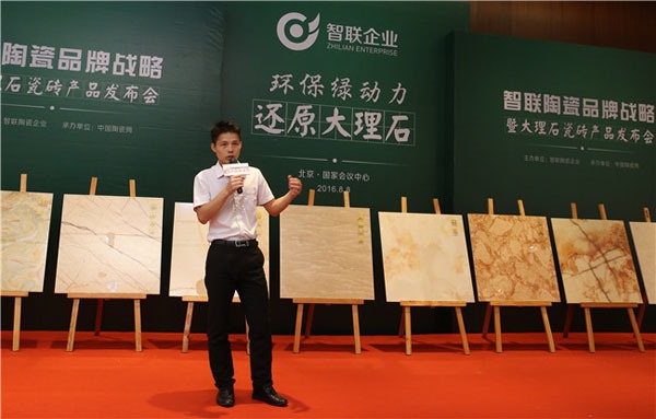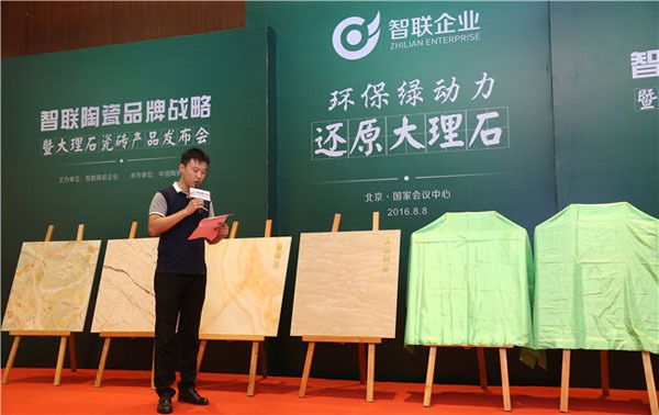 2016年8月8日,由智联陶瓷主办、中国陶瓷网承办,智联陶瓷品牌战略暨大理石瓷砖产品新闻发布会,于北京国家会议中心隆重举行。本次新闻发布会共同见证了智联陶瓷积极践行“绿动力”提升工程,斥巨资全面改造生产线设备、革新环保技术,从生产到产品匹配新型工业化模式,在产业绿色发展大势下所取得的研发创新成果。经过三个月的匠心淬炼,30余款还原珍稀天然石材的智联大理石瓷砖、翡翠玉石产品如期所盼,同时在现场纷呈亮相,成为智联陶瓷引领绿色制造时潮、厚积工艺精进之道的发轫之作。