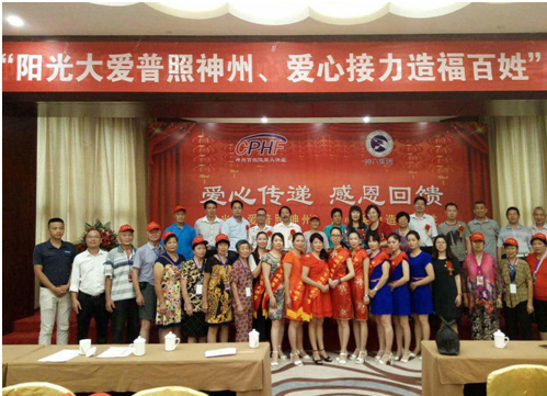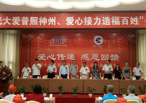 感谢神六集团董事长谢新辞先生,黄贵祥先生真诚邀请,爱心接力造福百姓。爱心传递,感恩回馈,我公司文化健康产品,感恩滴水瓶的感恩文化与神州百姓健康大讲堂的爱心传递感恩文化很好结合。我们感恩中国,感恩父母,感恩父老乡亲,感恩神州百姓健康大讲台。各位社会赞助企业代表及领导发表讲话,最后大家一起宣誓:爱洒大地,情暖人间,阳光大爱。