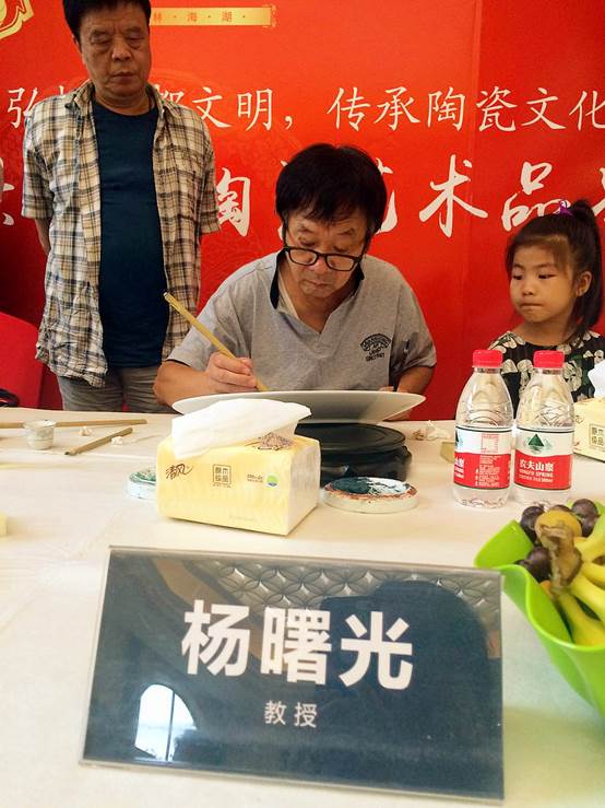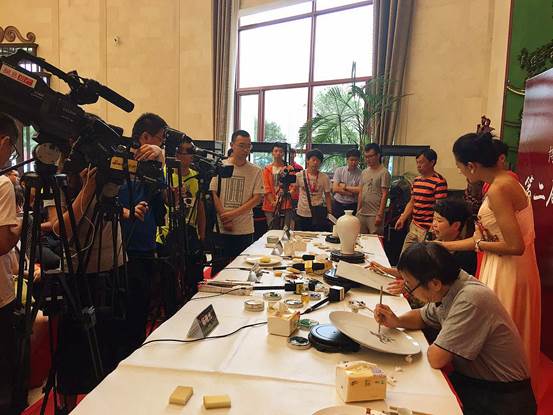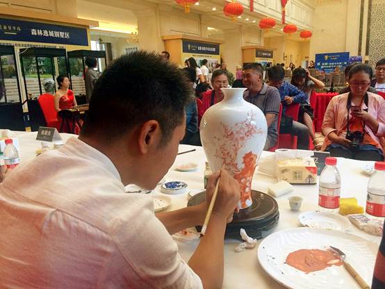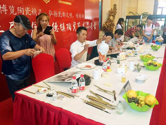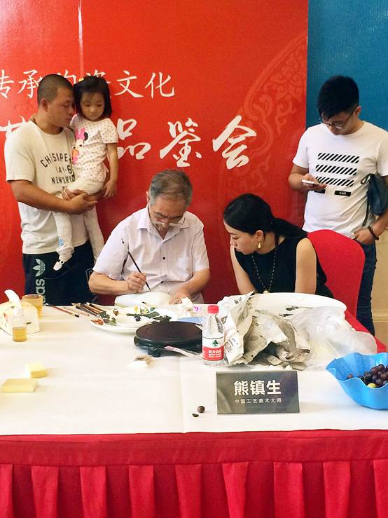 今日一早国宝级的五大陶瓷名家刚到齐,活动现场就急速升温,客户们纷纷不由自主的走近欣赏陶瓷名家现场作画,案桌立刻就被围了个水泄不通,还有很多热情的客户争相与名家大师合影留念,现场询问购买的客户也络绎不绝,看来中国陶瓷艺术已经被越来越多的人所认可。下面咱们来欣赏下陶瓷大师现场作画的动人风采吧!