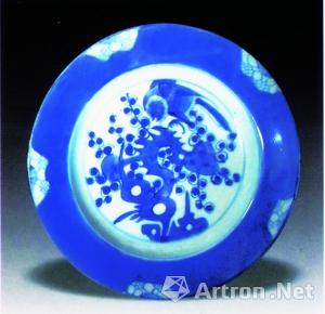 历史上,福建德化窑陶瓷纹饰中“喜上眉梢”也是常用的题材,民间艺人们以所喜爱的梅花谐音“眉”字,画喜鹊站在梅花枝梢,即组成了“喜上眉(梅)梢”的吉祥图案。民间多以喜鹊喻喜庆之事,“梅”与“眉”同音,故又作“喜上眉梢”,描述人逢喜事,神情洋溢的样子。这件清代德化窑青花蓝地开光纹折腰“喜上梅梢”纹瓷盘片,民间收藏),高5.4厘米、口径23厘米、底径8.5厘米,为清代福建德化窑器物。器呈宽板沿、浅腹、圈足、撇口,瓷盘通体施以白釉,胎体致密,釉色白中闪青,青花设色淡雅逸丽,仿若春风拂面,醉人心扉:图案花纹清晰,浓淡相间,纹样微凸,具有很好的视觉效果。青花色泽蓝中闪灰。色料鲜艳明亮,传递出一种灵动率真之气:瓷盘装饰纹样随作者的匠心而安排,莫不自然质朴,恰到好处。